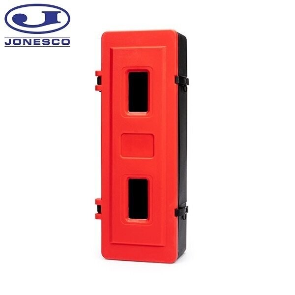De Jonesco JBXE83 brandblusserkast 9–12 kg is het originele en marktleidende frontlader ontwerp voor het veilig opbergen van een 9 of 12 kg brandblusser. Dankzij de enkele frontladerconstructie biedt deze brandblusserkast snelle en directe toegang tot de brandblusser in noodsituaties. De JBXE83 brandblusserkast is geschikt voor wandmontage en kan in vrijwel iedere omgeving worden toegepast, zoals industriële locaties, bedrijfshallen, parkeergarages en buitenterreinen. De kast is vervaardigd uit slagvast kunststof en is snel herkenbaar, wat bijdraagt aan effectieve brandveiligheid. Wij leveren Jonesco brandblusserkasten van hoogwaardige kwaliteit, speciaal ontwikkeld om brandblussers te beschermen tegen invloeden van buitenaf en om ze altijd gebruiksklaar te houden. Voor voertuigmontage is de KIT80 beschikbaar. Deze montageset is geschikt voor het bevestigen van een frontlader brandblusserkast op een landingspoot van een voertuig en is toepasbaar op 100 mm en 135 mm brede landingspoten.